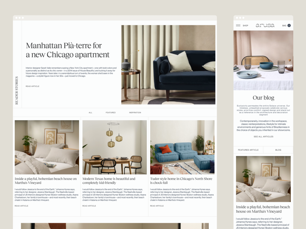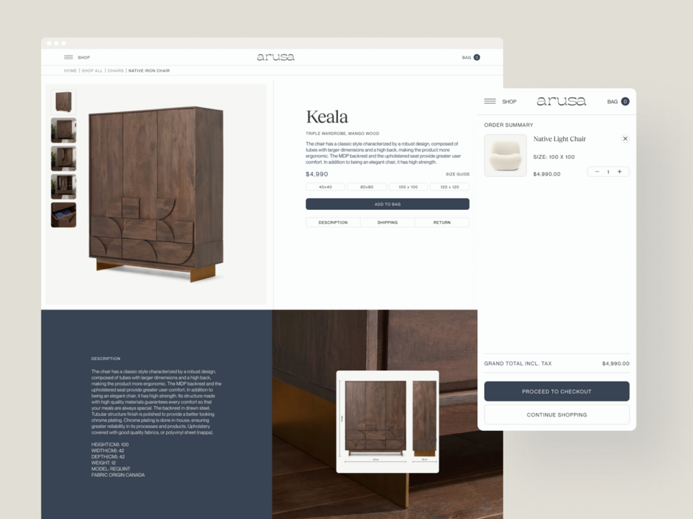 Arusa UI Kit was beautifully crafted for an E-commerce website design. This template could be used as a product E-commerce design template and will work in categories from furniture to skincare.